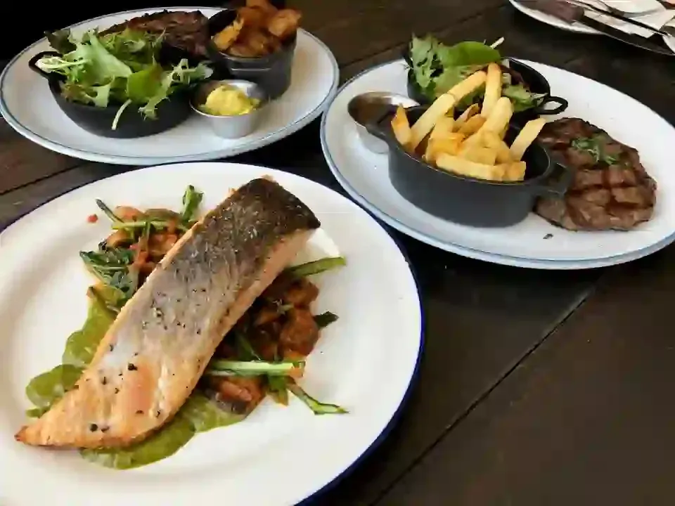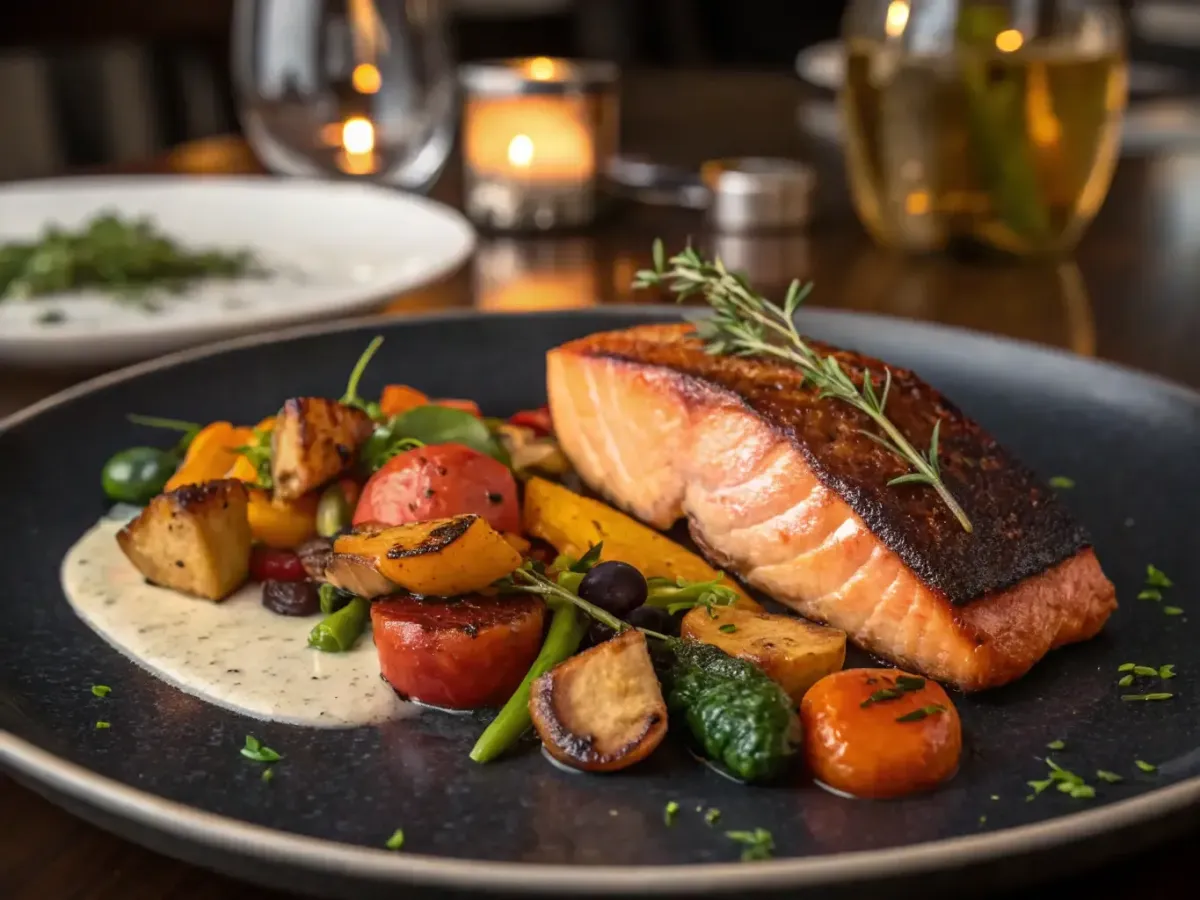 Succulent salmon fillet grilled to perfection, served with a zesty lemon butter sauce and seasonal vegetables that burst with flavor.