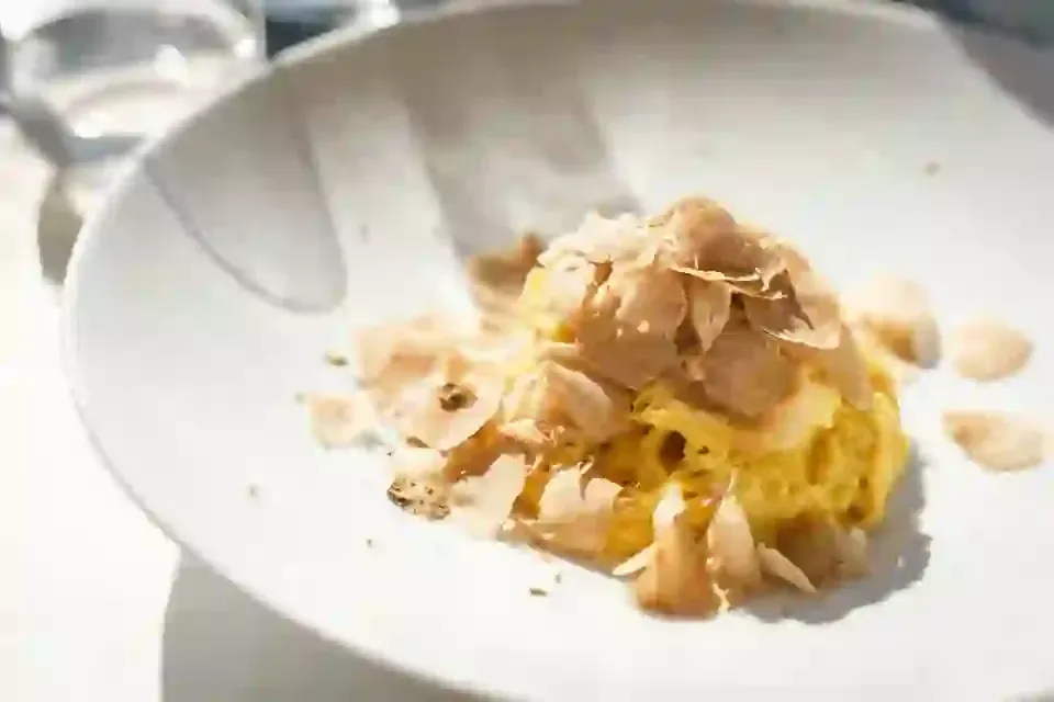 A creamy risotto infused with aromatic truffle oil, finished with freshly grated Parmesan cheese and herbs,.