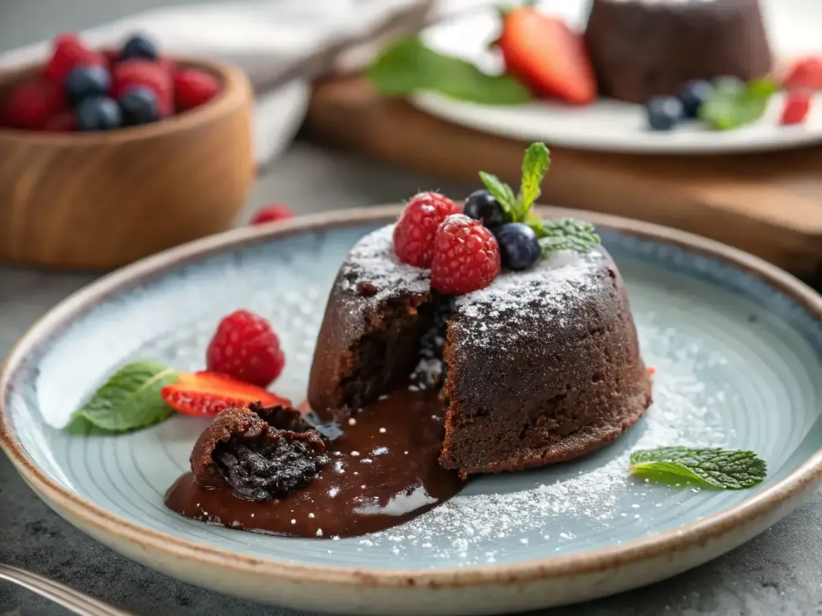 Decadent chocolate cake with a molten center, served warm with a scoop of vanilla ice cream for the perfect sweet ending to your meal.