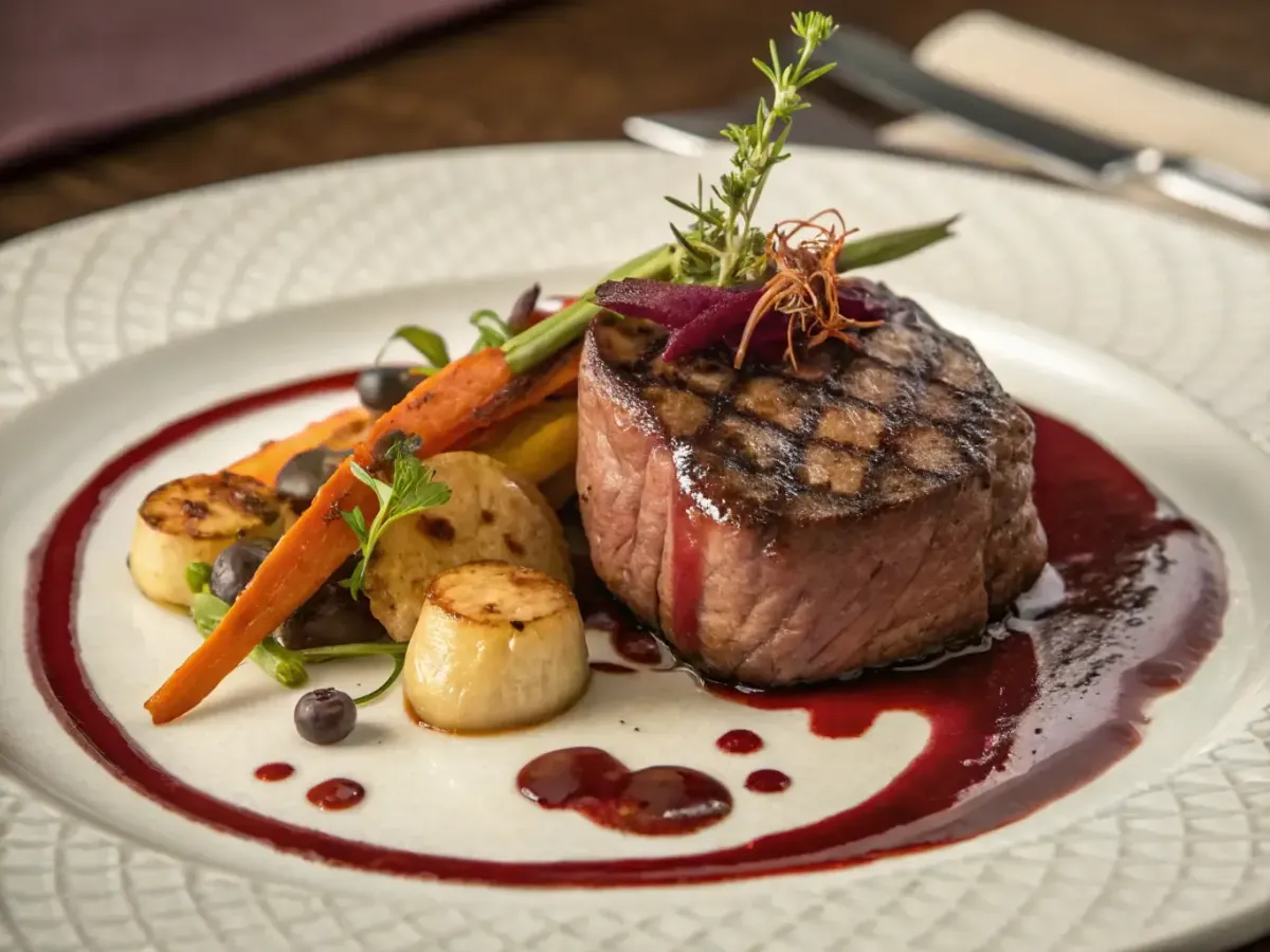 Indulge in our expertly seared steak, cooked to your preference and served with a medley of seasonal vegetables. A true delight for meat lovers.